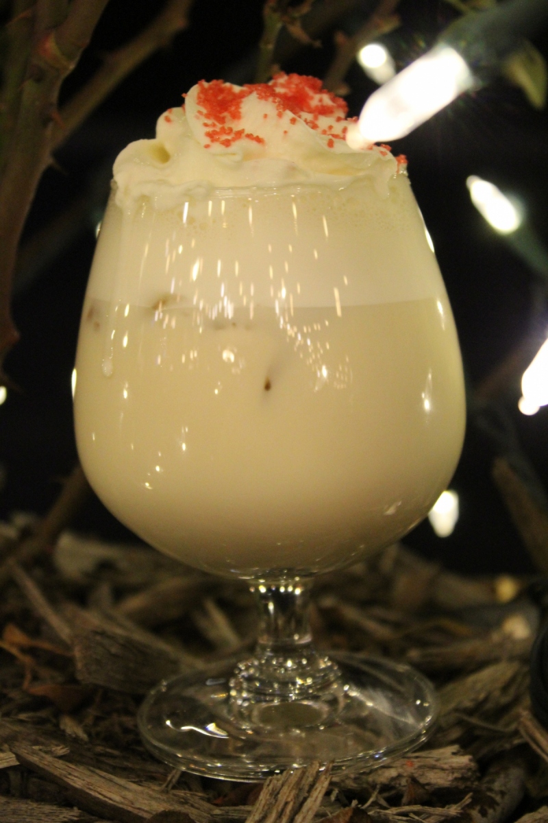 Jack Frost: Reminiscent of Andy's peppermint concrete! Combines peppermint schnapps and Irish cream, shaken with vanille de Madagascar, then topped with whipped cream and holiday red sprinkles.